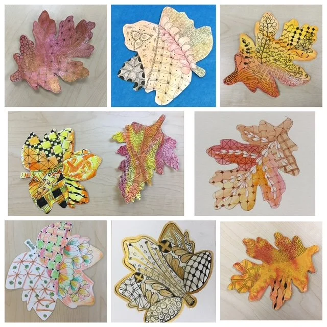 Mosaic of Tangled Leaves by Zentangle artists in the Morgan Hill Tangle Club in California.