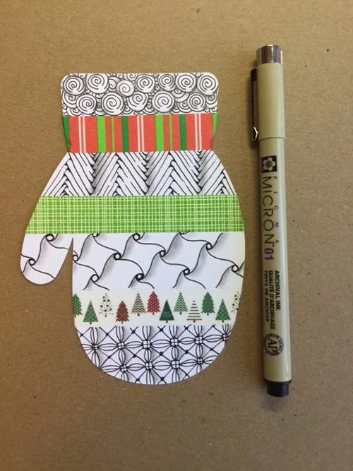 We’ll tangle beautiful patterns on a mitten shape cardstock paper that you’ll embellish with decorative washi tape.